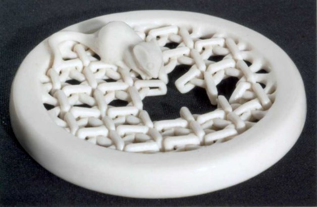 Jean’s notable accomplishments include: inventing the carved interlocking moveable links technique for porcelain craft, being awarded the Society for Connecticut Crafts’ Master Craftsman/Educator Award (1995), and having her pottery included in 13 permanent collections including the Metropolitan Museum of Art, the Smithsonian Institute, and Yale University Art Gallery.