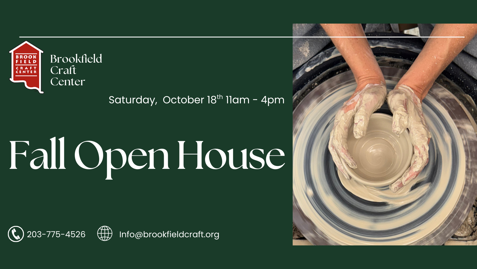 For more information about Brookfield Craft Center or questions about the Fall Open House, please call 203-775-4526 or email info@brookfieldcraft.org.