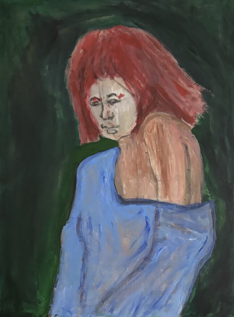 This work represents an individual trying to find their way. My work is most often done without a model or a muse but from what is felt internally in this case unsure and confused.