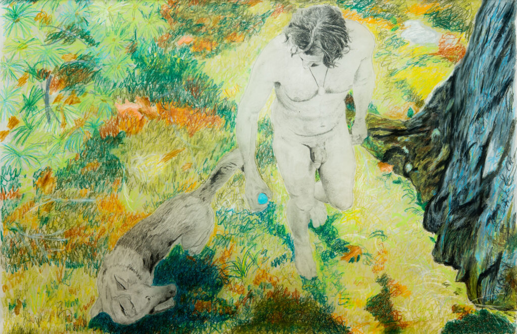 Isobel and Iceman 3 Mixed Media Graphite, water soluable wax crayon on acrylic coated kozo paper 25″ x 37″ $600